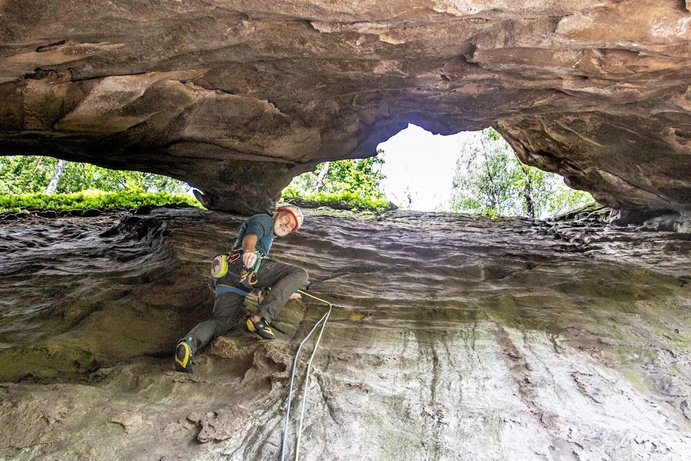 Pas moins de 40 voies ont été ouvertes, nécessitant le perçage et la mise en place de centaines de broches et de relais d'assurage. C'était le moment tant attendu de tester certaines des voies imaginées par nos ouvreurs et de faire une démonstration aux locaux. Tous ont été impressionnés par la descente en rappel des grimpeurs depuis le sommet de l'Oeil du Faucon, une magnifique arche de grès d'une quarantaine de mètres.