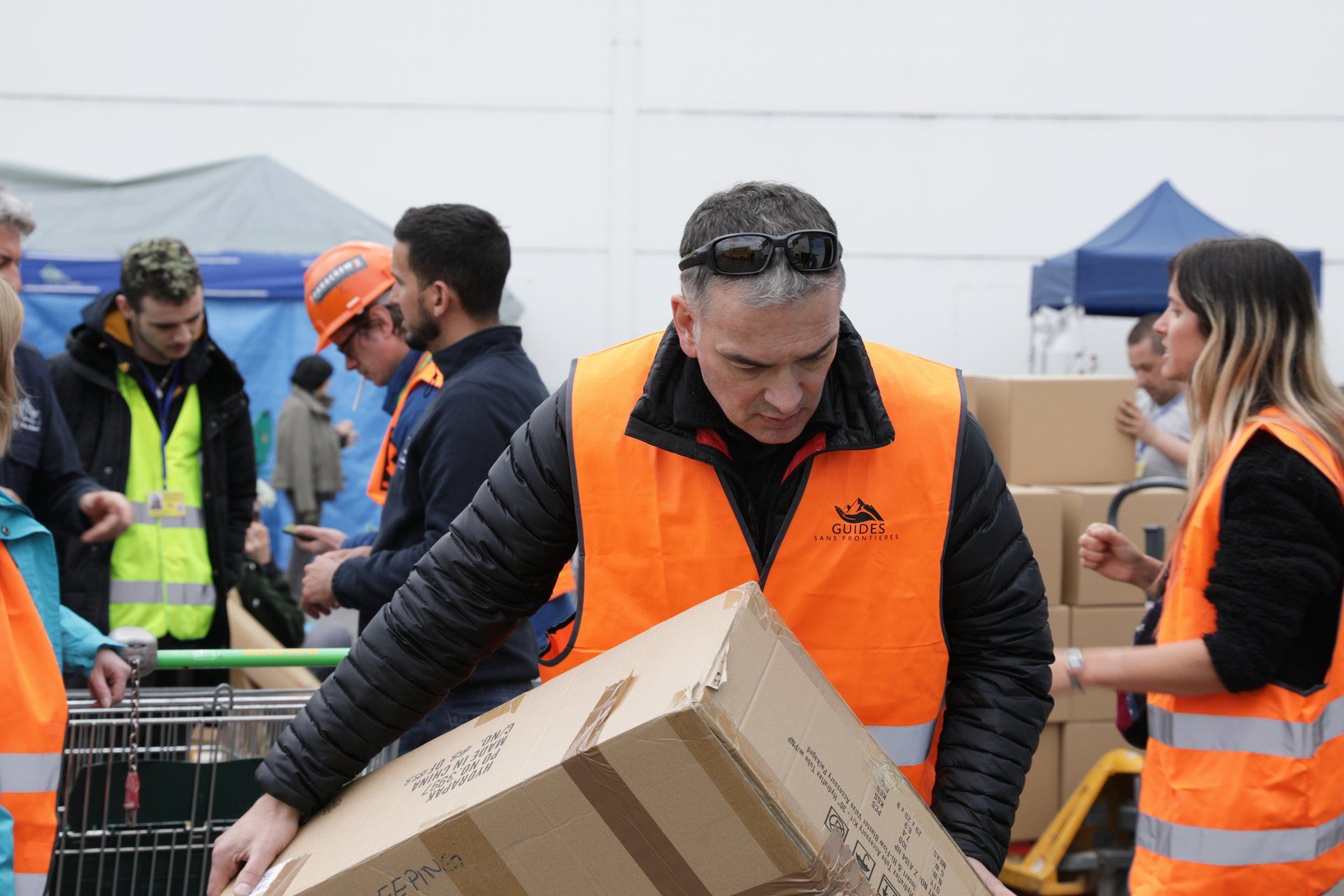 Pas le temps de niaiser, nous avons un gros chargement à distribuer. Heureusement que d'autres bénévoles viennent nous donner un coup de main. La Fondation Brigitte Bardot nous prête les siennes pour décharger, Seb des Pompiers Solidaires s'active pour nous trouver suffisamment de sièges bébés et enfants pour toute la troupe qui va embarquer, Aurélie Cenno et Rachel Le Guillou sont à la photo pour que l'on puisse vous relayer quelques images alors que nous on court de partout !